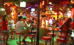 The quintessential Patong entertainment, a beer bar is one of the countless little places that are jam-packed together on the bar streets and sois of Patong. These places uniformally employ numerous pretty hostesses whose job is to lure patrons by various means. The most common tactic is simply to stand out front and repeat "Hello, welcome" like a mantra to anyone who walks by.